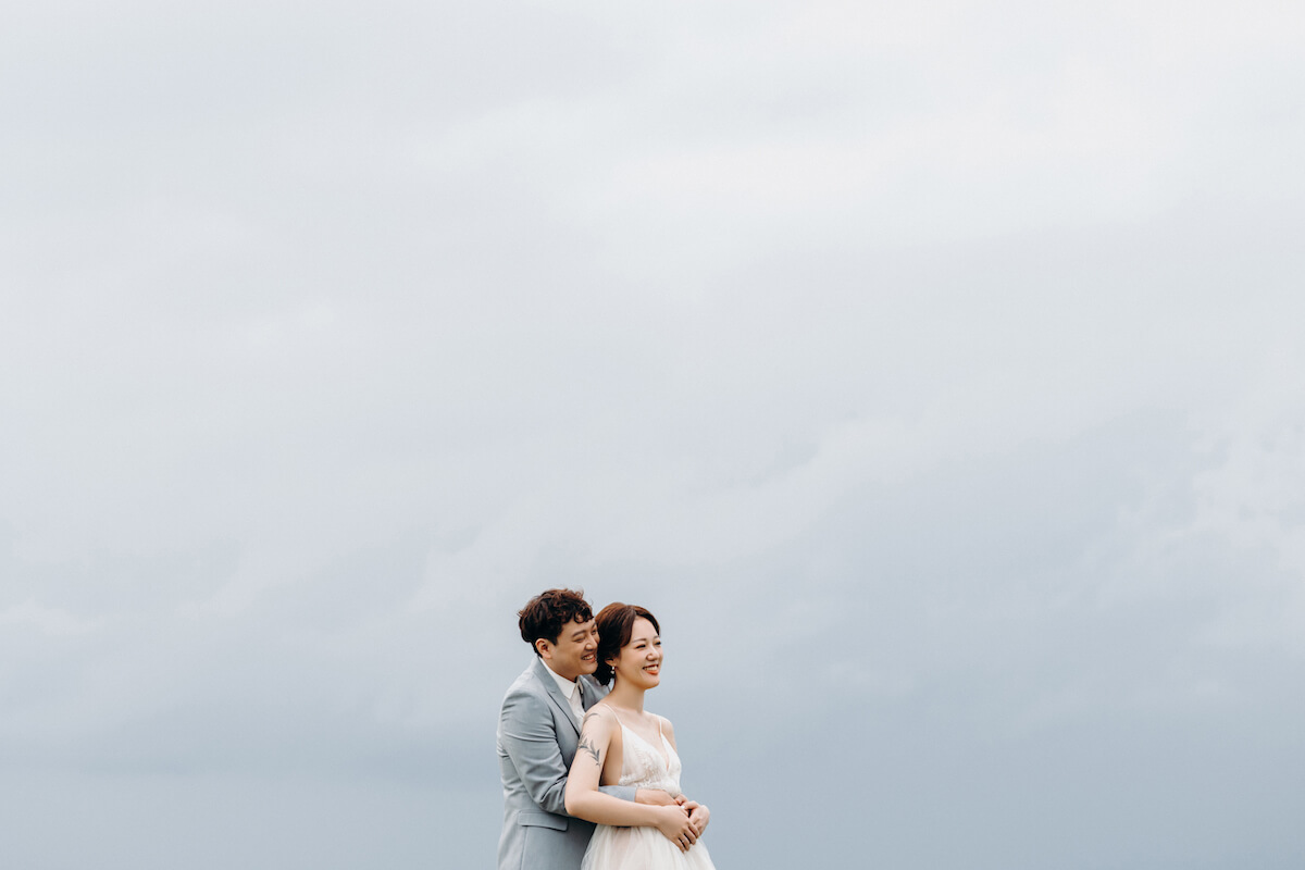海邊婚紗是許多新人指定的婚紗照風格之一,可以一起踩著浪花,漫步在夕陽西下,美不勝收。通常包包會把海邊放在最後一個景點,天氣好時一望無際的海灘被陽光照射成一片金黃色,新人親吻額頭、擁抱大笑等自然的互動,都與逆光氛圍相輔相成,又或者餘暉晚霞則能拍出浪漫無比的海景照片。不巧遇上下雨的話,在不用補妝的狀況下,其實淋雨拍攝也會有很棒的效果的。