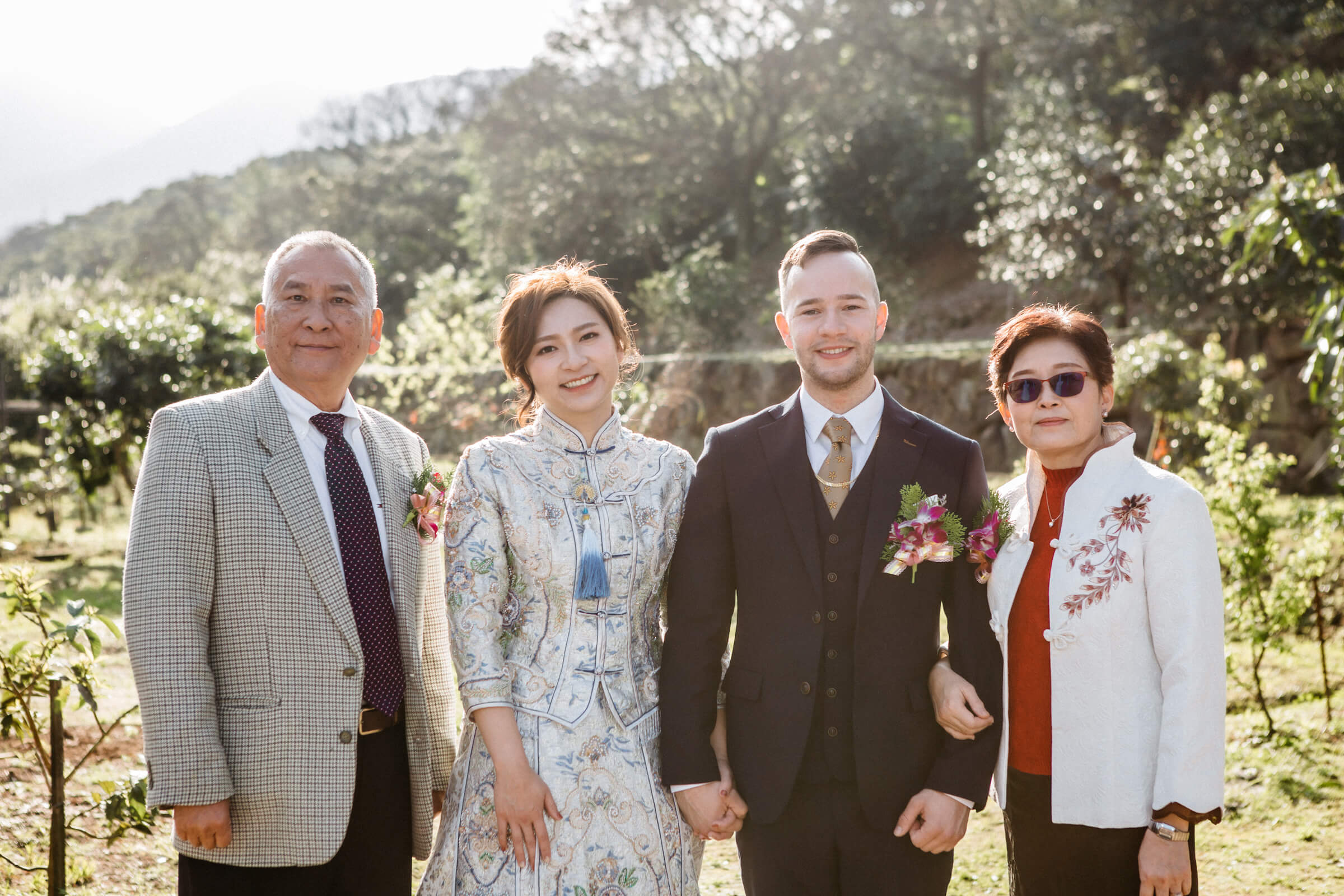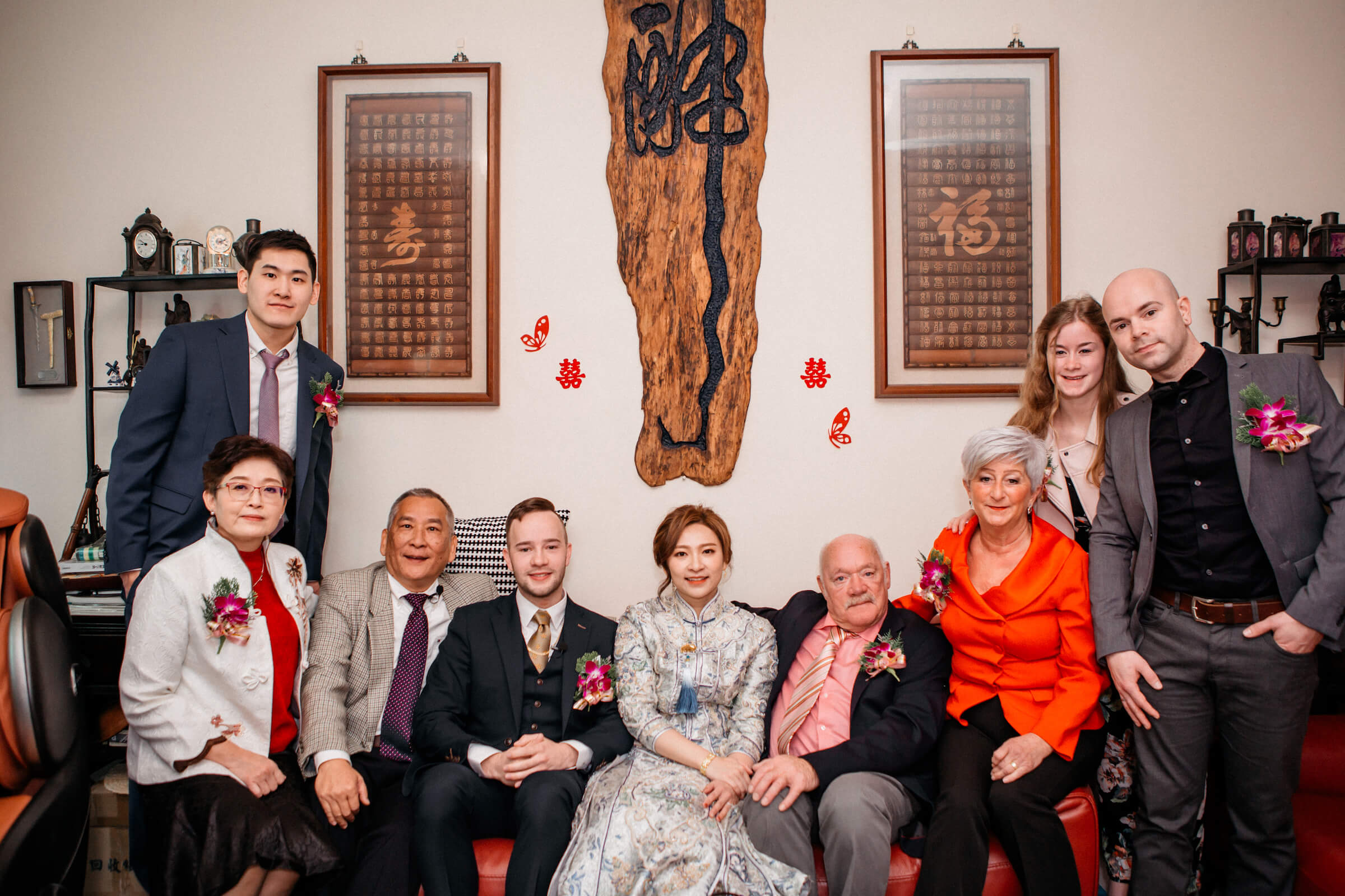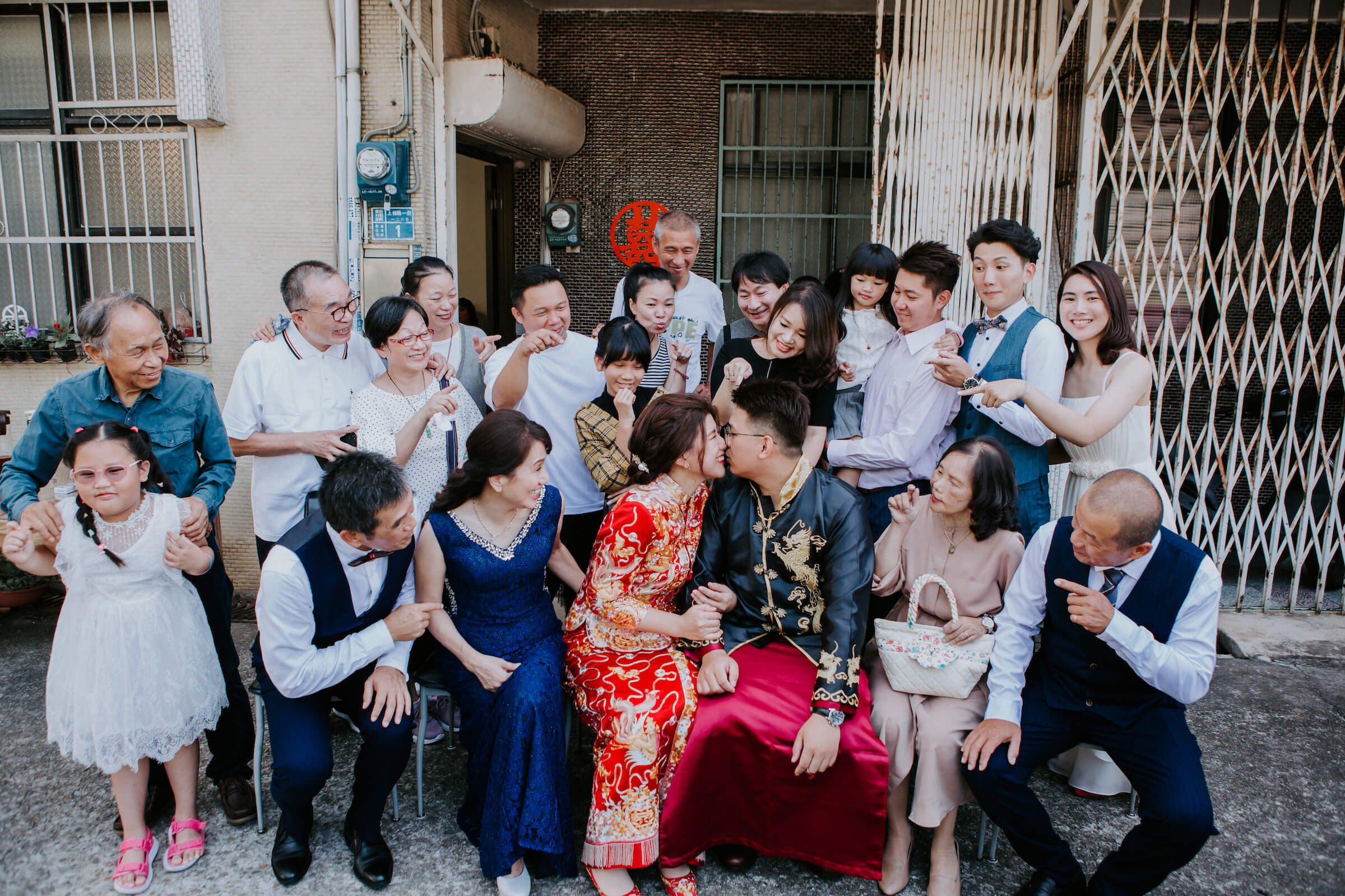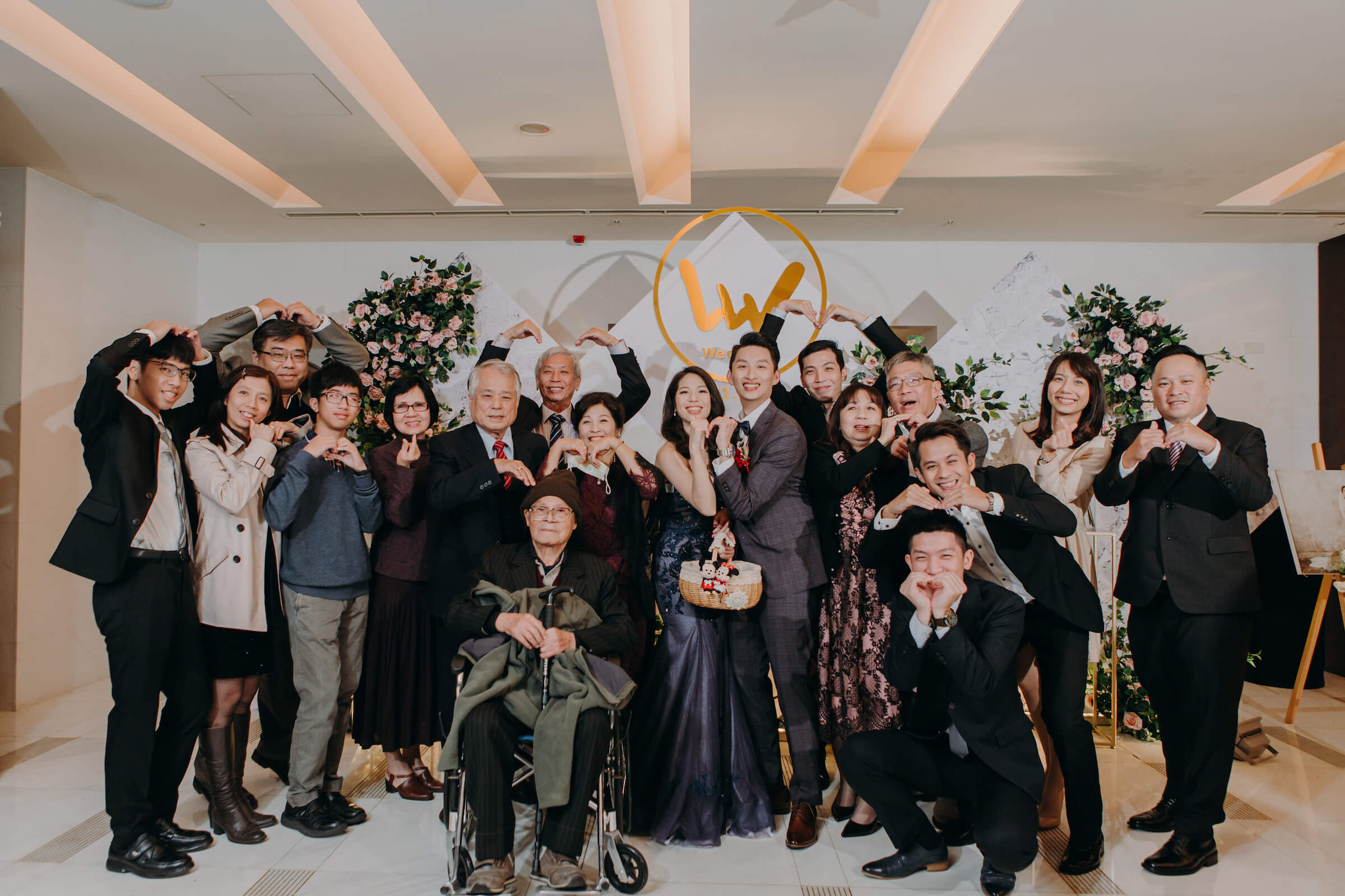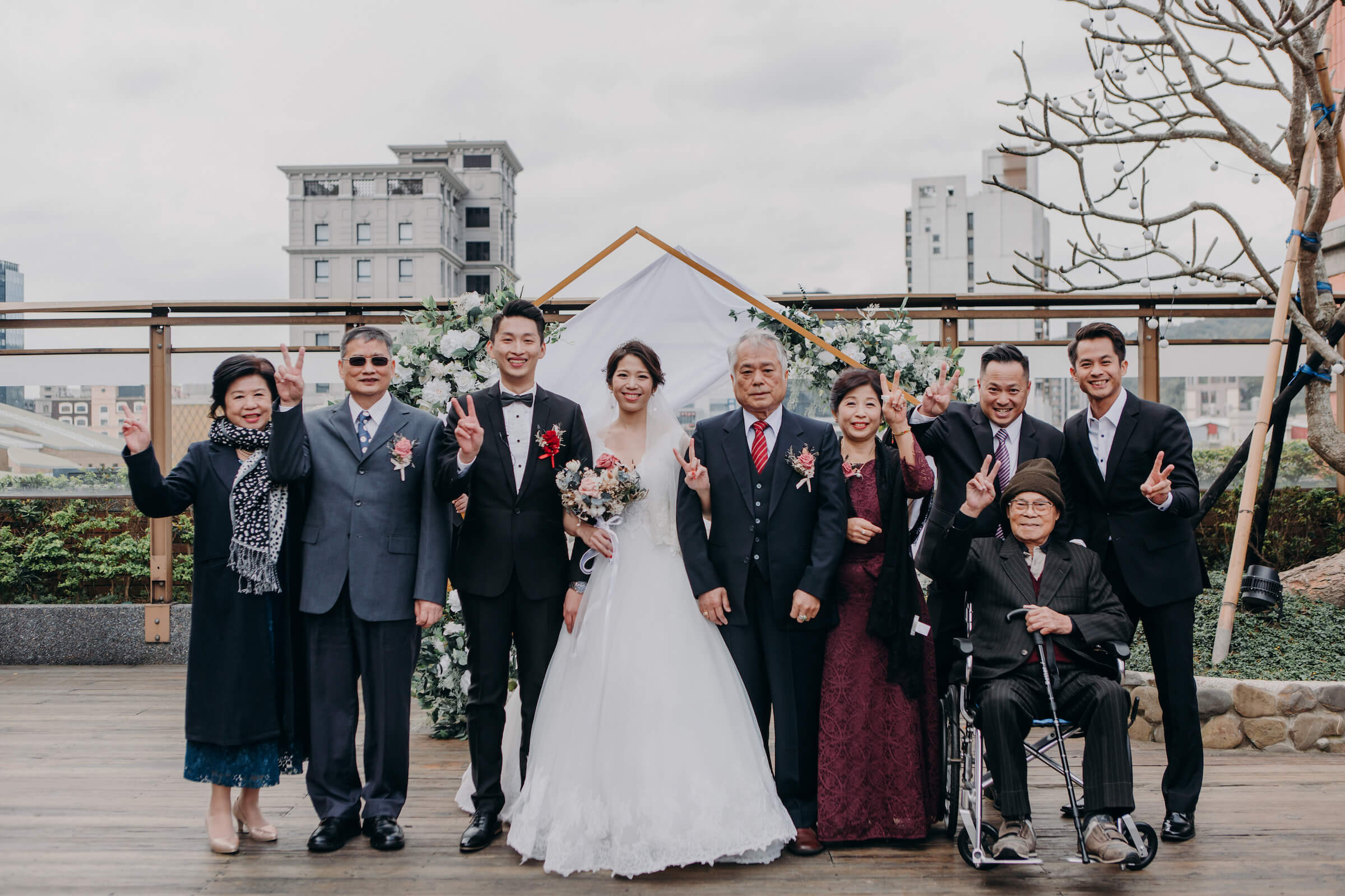 在婚禮的這一天,主角都有專人打理之外,前來參加的親朋好友也都盛裝出席,絕對是拍幾張全家福的好時機。在儀式的前後,