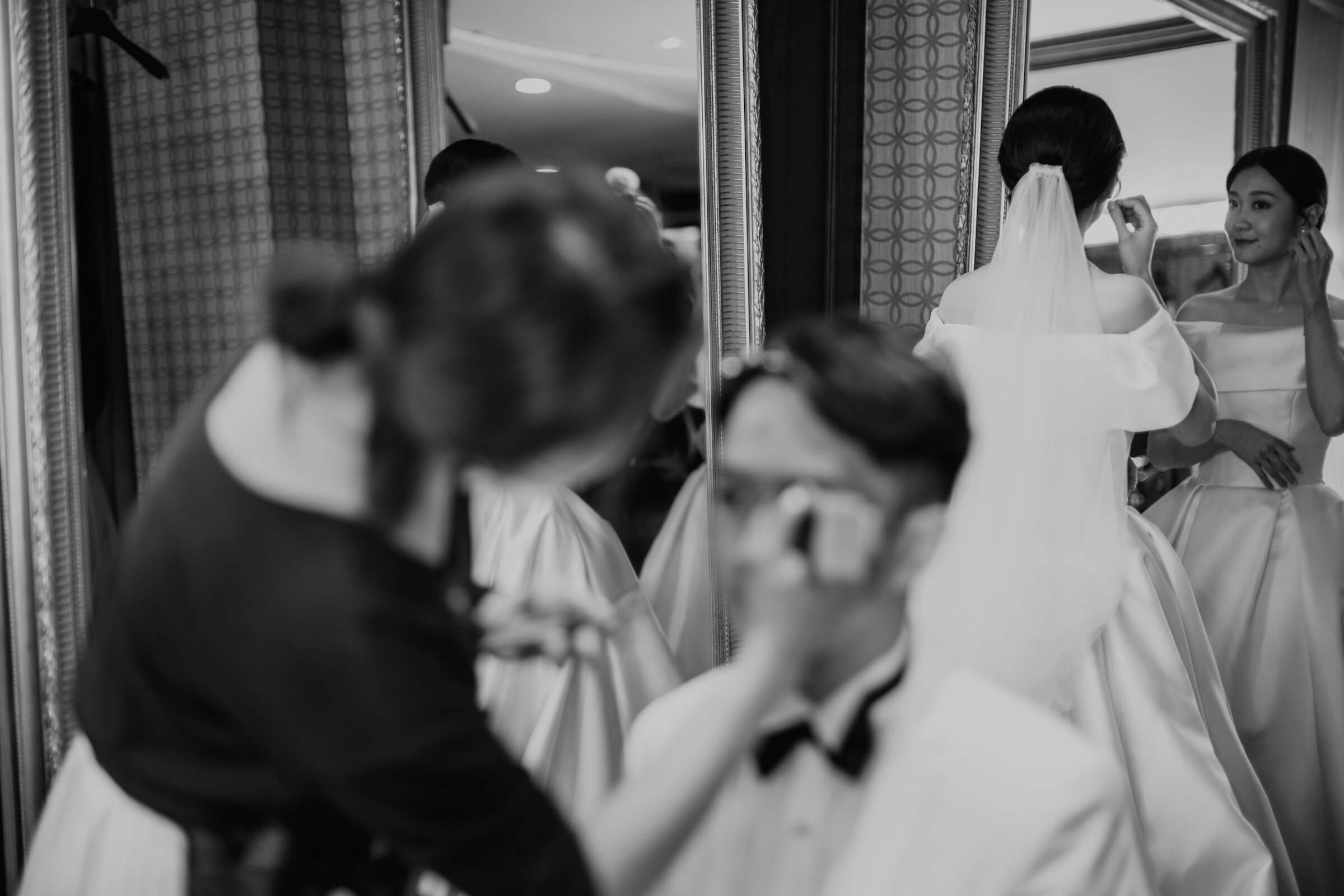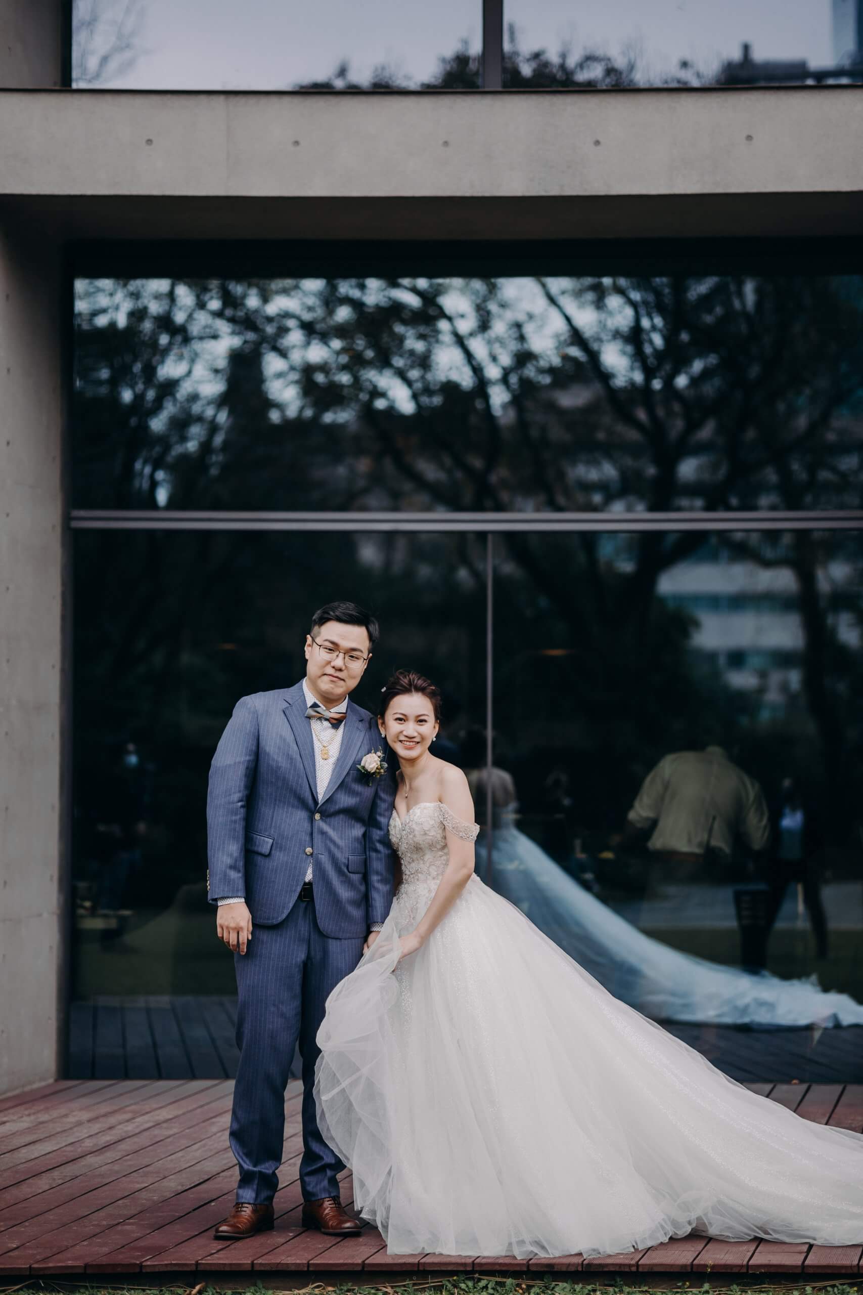 位於松山區的翡麗詩莊園,證婚有半戶外花園證婚以及教堂證婚兩種不同風格的場地,特別喜歡教堂的簡約設計配上大片的落地窗,交手和交換誓詞的儀式總是讓賓客感動落淚。走出建築外就有敦化北路的林蔭大道很適合空閒間走拍,新娘休息室也是讓我拍得愛不釋手,是加分的一環。