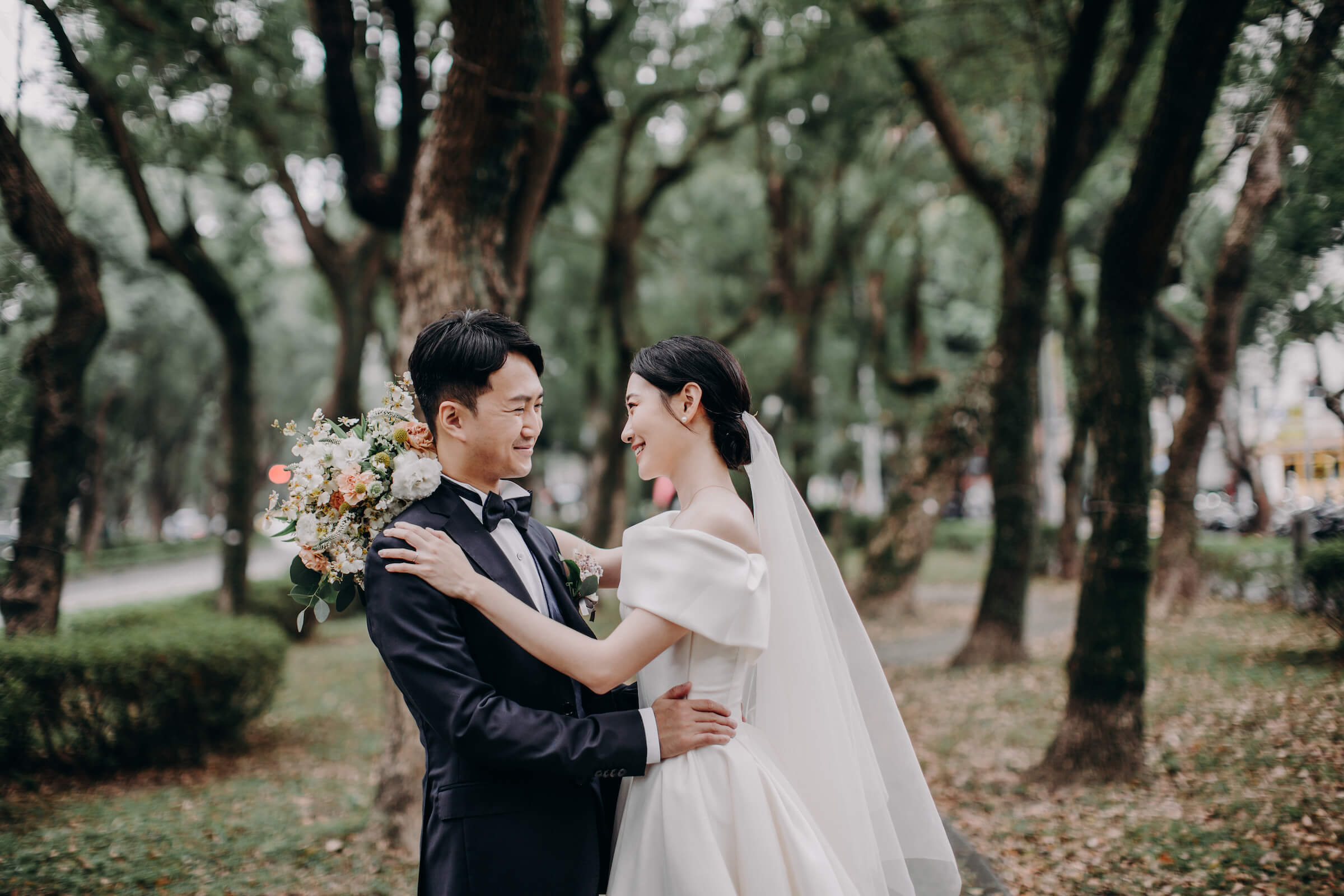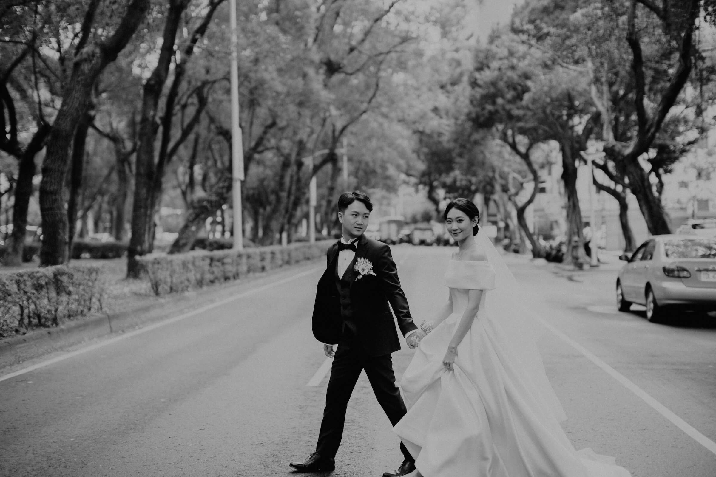 步行到建築外,就可以進入到松菸文藝園區,在綠色樹陰下漫步,陽光透射照耀下,趁婚禮空檔之餘很適合散步走拍。